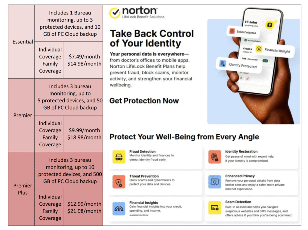 Whether you choose Essential, Premier, or Premier Plus, you’ll gain peace of mind knowing your personal information is being monitored and protected. Norton LifeLock helps ensure your personal information is not anywhere it shouldn’t be by protecting the things you care about most: identity, money and assets, family, and privacy.